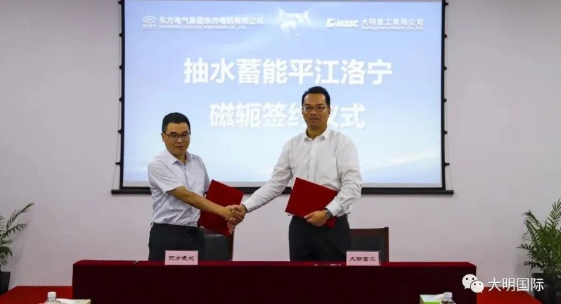 东方电机潘辉主任、大明重工陈宁总裁签约合影