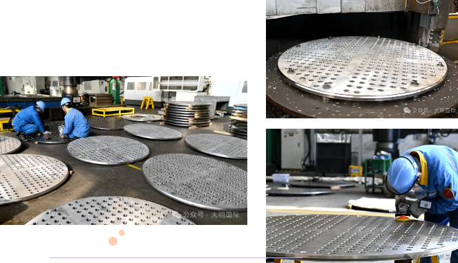 从1月到3月份,江苏大明承接的食品机械用不锈钢管板订单持续不断,且需要边加工边发货。截至日前已完成300多块管板加工,客户均对管板的质量与交货期等表示高度认可。 面对当前严峻的市场形势,大明不断挖掘内外服务潜能,由销售、技术、生产、品管等人员组成专项服务团队,全程跟踪项目,及时反馈、高效服务,且无论是大小客户,均以诚相待,并充分发挥在生产技术、工艺设计、定制化加工、选材等方面的差异化服务优势(文末推荐阅读),确保全流程“满分”交付,让客户省心、放心、舒心。 △往期加工管板示例(部分) 凭借在纯钛板、不锈钢板、复合板及各类高强钢管板、折流板复合加工上的丰富经验,大明已广泛服务于压力换热器、核电、石化、能源、机械等行业领域,并成为国内外多家知名装备企业的合格供应商。 2024年,大明将加大海内外市场开发,同时充分发挥兄弟协同联动、先进设备集群、创新工艺技术等优势,不断提升服务能力,力争与更多行业客户共赢未来。