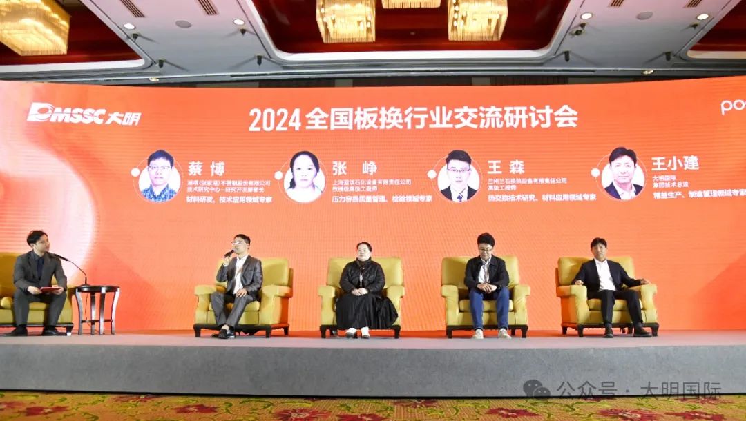 大会还设置了沙发论坛对话环节,浦项(张家港)技术研究中心研究开发部部长蔡博、上海蓝滨石化设备教授级高级工程师张峥、兰州兰石换热设备高级工程师王森、大明集团技术总监王小建四位专家受邀交流了参会感受,一致认为当前行业竞争激烈,并从各自角度分享了对策。针对客户关注较多的疑问,受邀专家也一一给出了建议和解答,为板换行业发展凝聚合力、提振信心。
