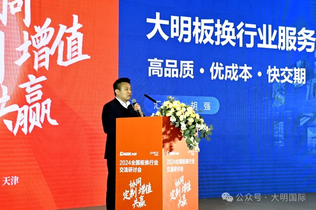大明国际副总裁张锋首先对全体嘉宾的到来表示热烈欢迎和衷心感谢。他分析了板式换热器的重要地位和现状,并介绍了大明的经营成绩和协同化服务网络、丰富钢材资源、“一站式”专业化定制、供应链创新金融服务“大明宝”等优势。他表示,作为服务方,大明将虚心听取意见和建议,不断提升服务水平,相信依托专业化和差异化服务能力,与钢厂联合,定能为下游客户提供最值得信赖的材料及加工服务。