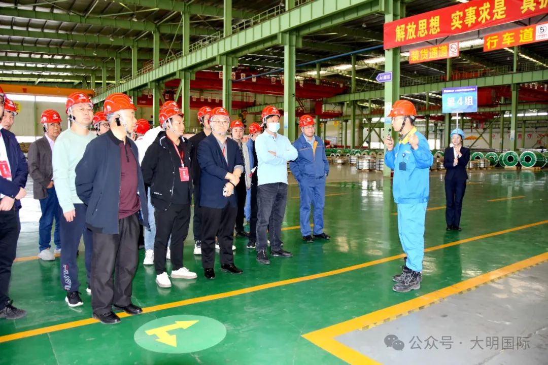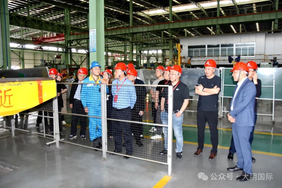 在倪晨总经理的陪同下,与会的企业家代表走进太原加工中心生产车间,实地观摩了各加工平台的工艺流程,并听取了大明在材料保供、先进设备、工艺技术、物流运输等方面的“一站式”服务能力以及在国内外各行业领域的成功服务案例介绍。