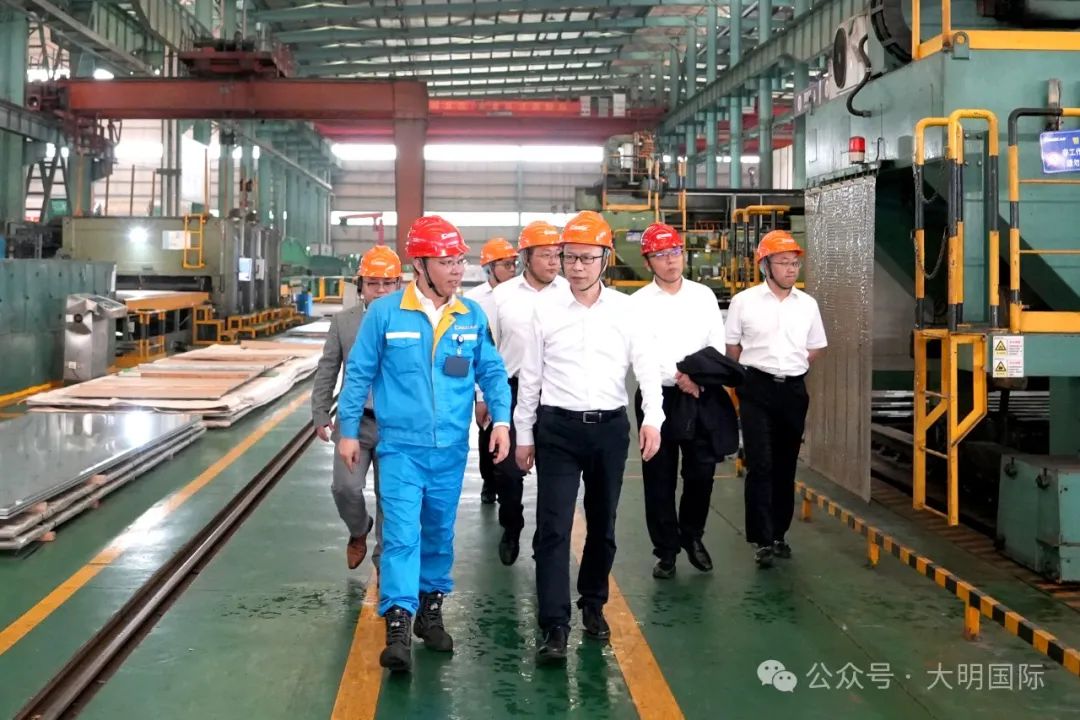 大明国际董事会主席周克明、总裁助理张俊、江苏大明特种钢材总经理王大明、江苏大明副总经理张帆、江苏大明特种钢材销售部部长王宗军等热情接待。