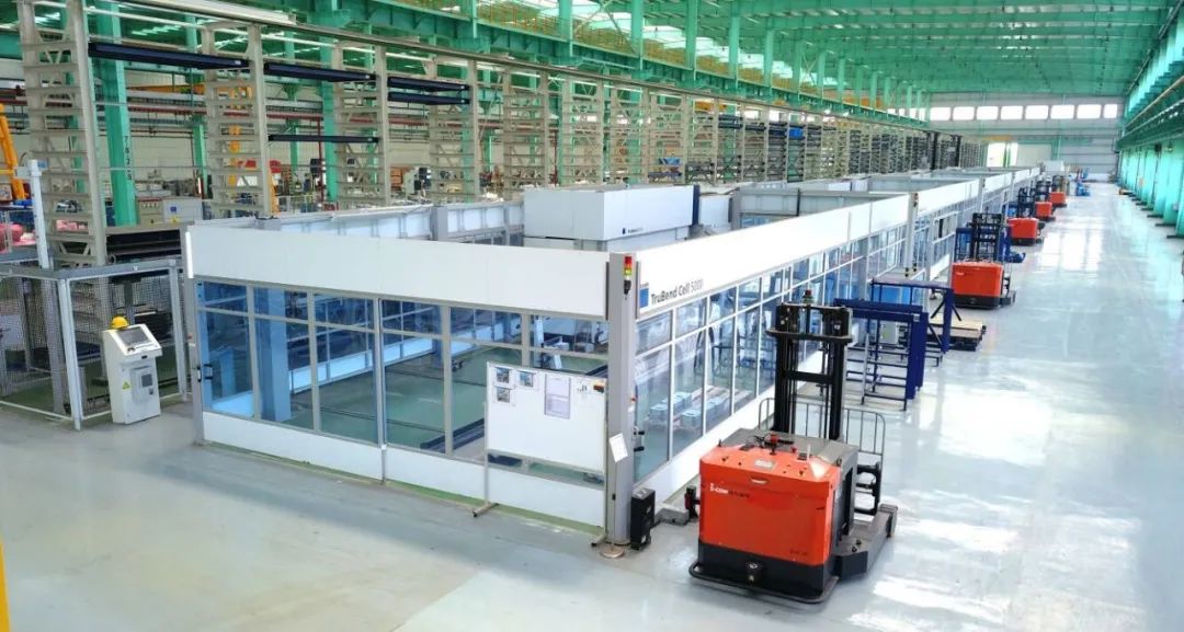 当前,大明精工已荣获“江苏省两化融合管理体系贯标AAA级示范企业”、“无锡市智能车间”等荣誉资质,车间拥有国际领先的数字化、自动化柔性钣金产线,以料库为中心,配备了多种钣金加工设备,包括TruMatic 6000复合机、8台TruBend Cell 5000全自动折弯中心、6台Trulaser Weld全自动焊接中心。另外还配备了TruLaser Center 7030全自动激光切割加工中心(国内仅2台),能全自动完成激光切割的上料、切割、分拣、堆垛再到料库的全流程环节。