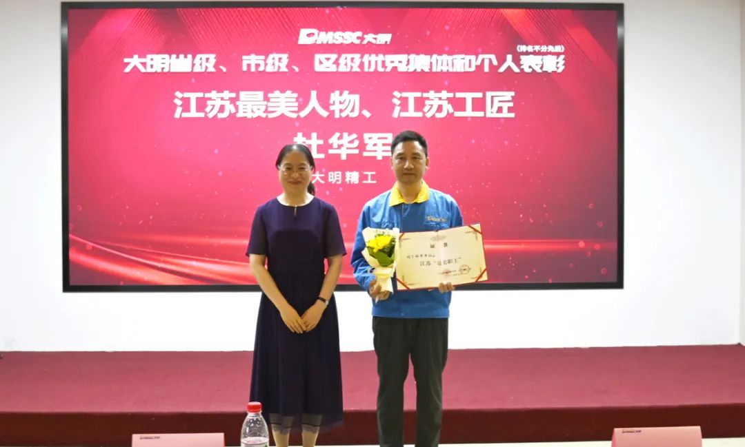 期间,江苏大明财务总监、大明工会委员张传勇宣读了江苏大明五一劳动标兵的表彰决定,并为获奖榜样颁奖。