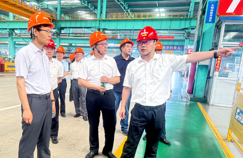 近日,在高新区分管委领导石振房等的陪同下,泰安市政协提案委员会主任毕研坤、市政协副秘书长李芳、市政协提案委员会副主任、工作室主任徐宗林一行到大明泰安加工中心调研。大明泰安加工中心总经理陈剑铭、副总经理俞明旺等热情接待并陪同参观。