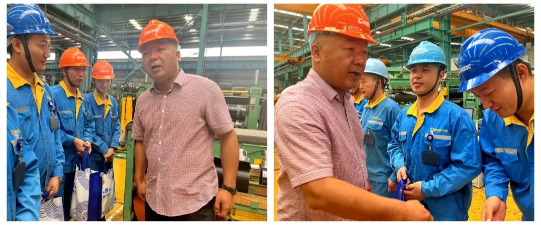 大明嘉兴加工中心总经理陈钟炜等热情接待,并陪同慰问。姜主任首先向坚守岗位的大明一线员工致以崇高敬意,并询问了企业目前的运营、人员配置、安全生产等情况。他耐心叮嘱车间各机组务必要注意防暑降温,合理安排生产作业任务,切实做好员工的后勤保障工作。
