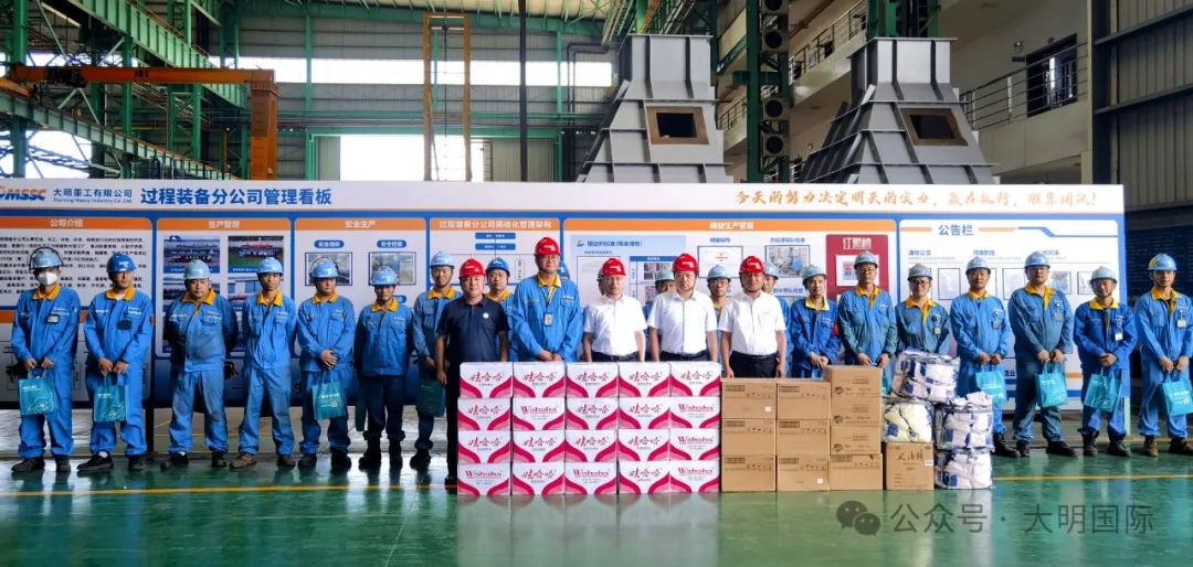 大明重工集团副董事长司徒顺新、过程装备分公司总经理助理丁传江,重工集团工会主席蒋琍松及管理部部长田鹏等陪同慰问,为一线员工送去了暖心问候和防暑降温物品。