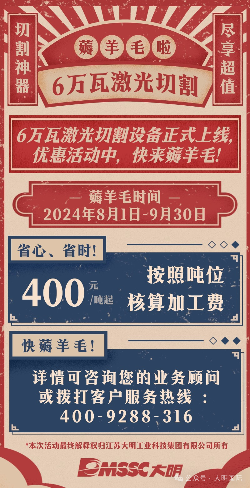 切割加工是大明的优势工艺,除激光切割以外,还拥有等离子、水切割等,后期江苏大明将