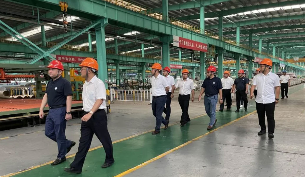 8月20日,河钢山东销售中心筹备组组长何黔挥、筹备组副组长任希和、运营管理部负责人王海波、冷板部负责人和河利、热板部负责人范文鹏、中板部二级经理徐宝仓、热板部二级经理吴照辉、周波一行来访大明泰安加工中心,大明泰安加工中心总经理周彬、副总经理陈剑铭、加工服务部部长刘化明、碳钢销售部部长韩强等热情接待。