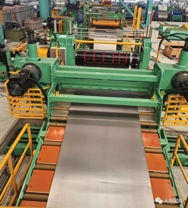 该生产线主要加工冷轧不锈钢及镀锌材料,加工厚度0.3-2.0mm,宽度300-1300mm,最大上卷能力28T,最大收卷能力28吨,最大加工速度200m/min,分条成品30条,最大收卷直径2200MM,最小分条宽度22MM。