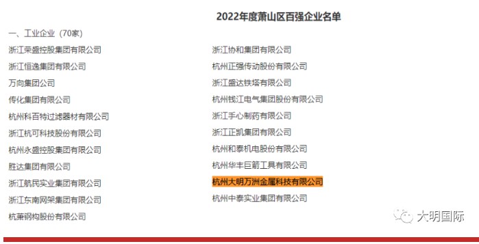 萧山区百强企业每年评选一次,旨在通过营造崇尚创业创新的良好氛围,为鼓励在经济发展中做出贡献的先进企业,根据《2022年度萧山区百强企业评选办法》精神,经各相关部门考核,区委、区政府决定命名这些企业为2022年度萧山区百强企业。
