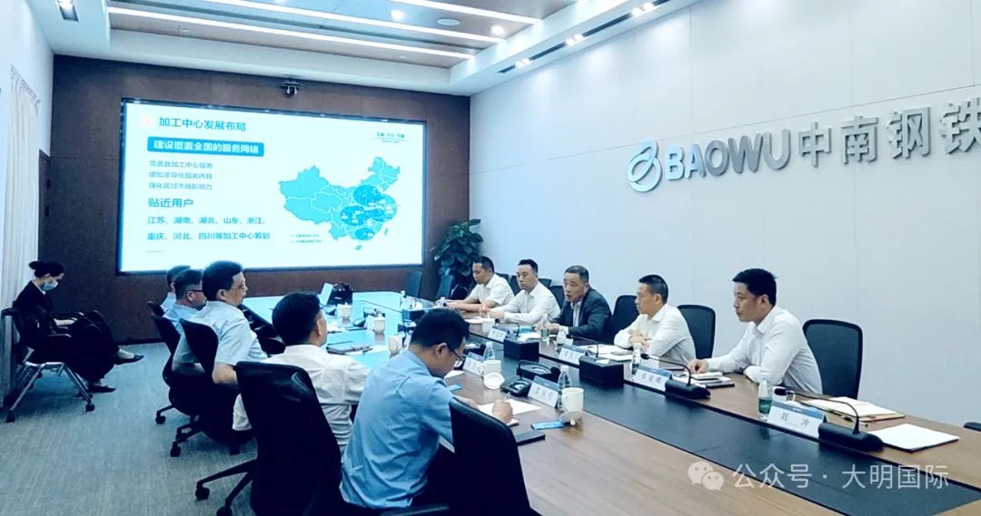 5月8日,大明国际董事会主席周克明、总裁梁宗仁、总裁助理张俊、集团碳钢事业部总经理邓梁峰、集团规划总监刘学政、集团碳钢事业部总经理助理刘冲一行前往宝武集团中南钢铁有限公司进行交流。中南钢铁党委书记、董事长吴琨宗,党委常委、中南股份高级副总裁邵林峰,中南股份营销中心产品销售部总经理余国兵,中南钢铁营销管理总监江帆、中板销售资深经理邵国号等热情接待。座谈交流中,吴琨宗董事长对周克明主席一行的到来表示欢迎。双方分别介绍了各自公司的生产经营、服务优势和未来规划等情...
