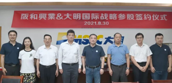 2021年8月30日,日本阪和兴业株式会社战略参股大明国际签约仪式在大明国际无锡总部和阪和兴业大阪总部、东京总部在线进行。阪和兴业社长古川弘成、常务董事松原圭司、中国总代表藤塚正彦,阪和上海总经理高冈宏治、阪和上海常务副总经理大平尚哉、阪和上海经理陈纲,大明国际董事会主席周克明、董事会副主席邹晓平、总裁蒋长虹、财务总监曹佩、董事会主席助理王旭明、总裁办主任王哲等领导参加。根据协议,大明国际将向阪和兴业定向增发约2914万股。增发完成后,阪和将持有大明国际约2.29%的股份。