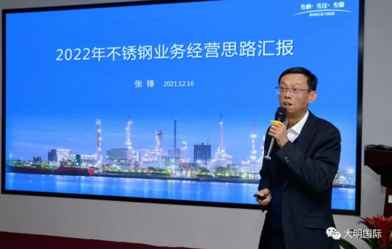 周克明主席认为集团不锈钢板块2022年的经营思路“举措周全、措施明确”。他要求接下来要夯实内部管理,继续强化运行体系、人才等的保障和后台支撑,各子公司要PK效率、快速反应,干部要深入一线,财务一把尺,管理要下沉,切实围绕利润等指标开展各项工作。他指出,虽然外部形势严峻,但大明在口碑、资本、人才、技术、体系等方面建立起来的优势明显,厚积薄发,2022年的目标一定要完成、能完成。