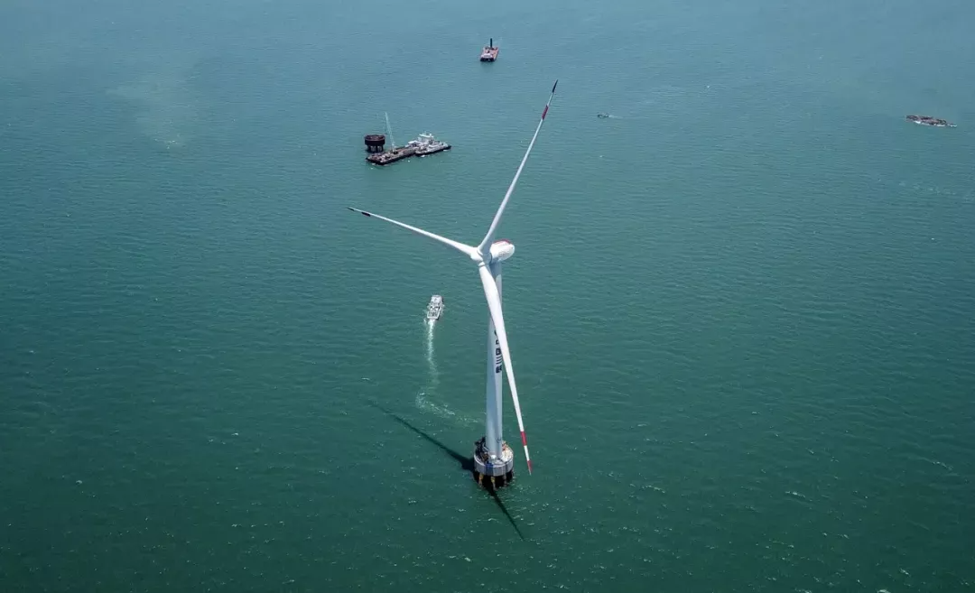 由东方电气集团自主研制的18兆瓦海上半直驱风电机组