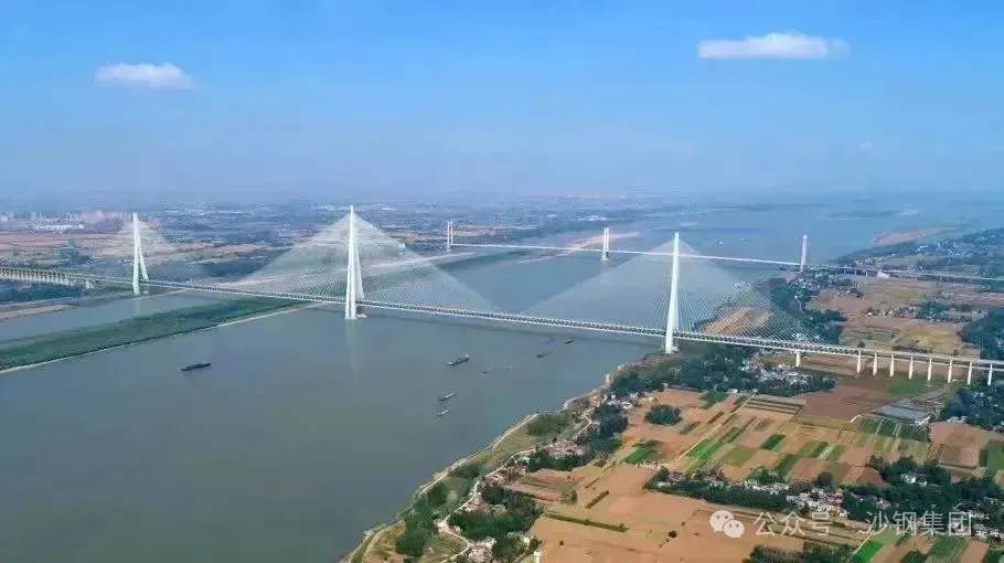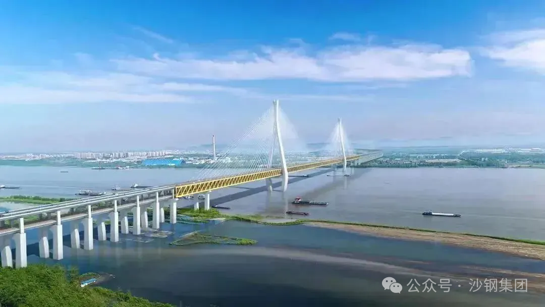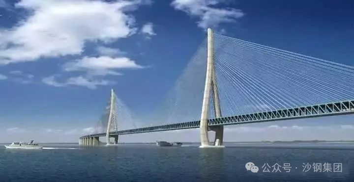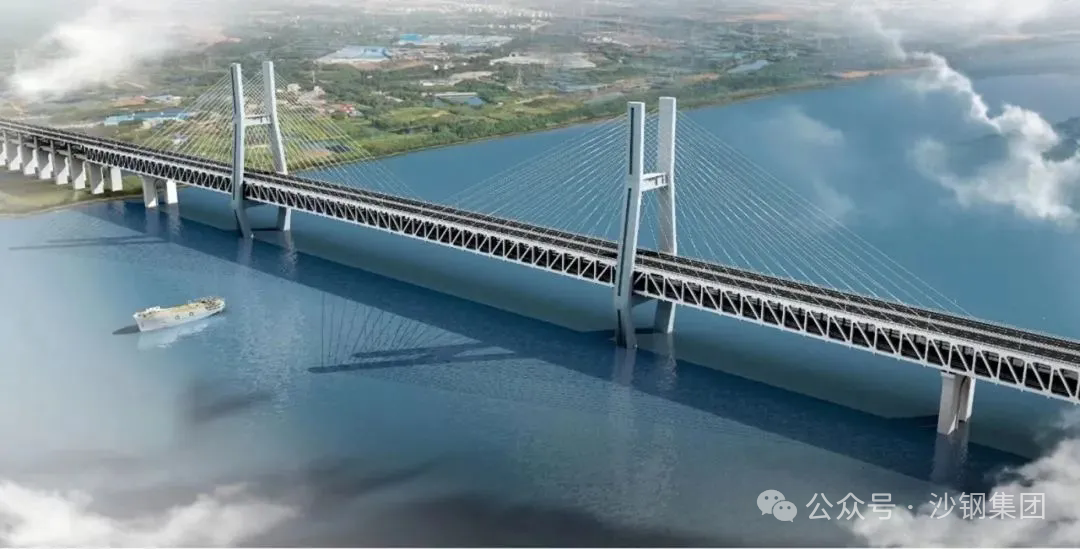 主跨跨度608米,为世界最大公铁合建同层分幅混合梁斜拉桥;